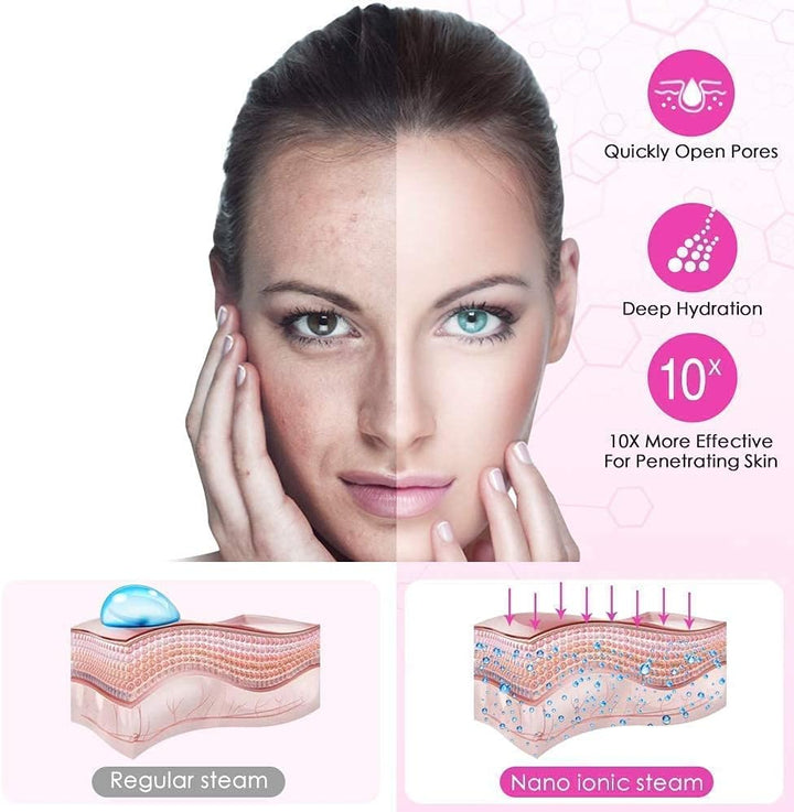 3. **ضبط القوة**: تحكمي في قوة البخار واختاري الإعداد الذي يناسب احتياجاتك. لاحظي أن القوة العالية للبخار يمكن أن تكون حساسة للبشرة الحساسة.
