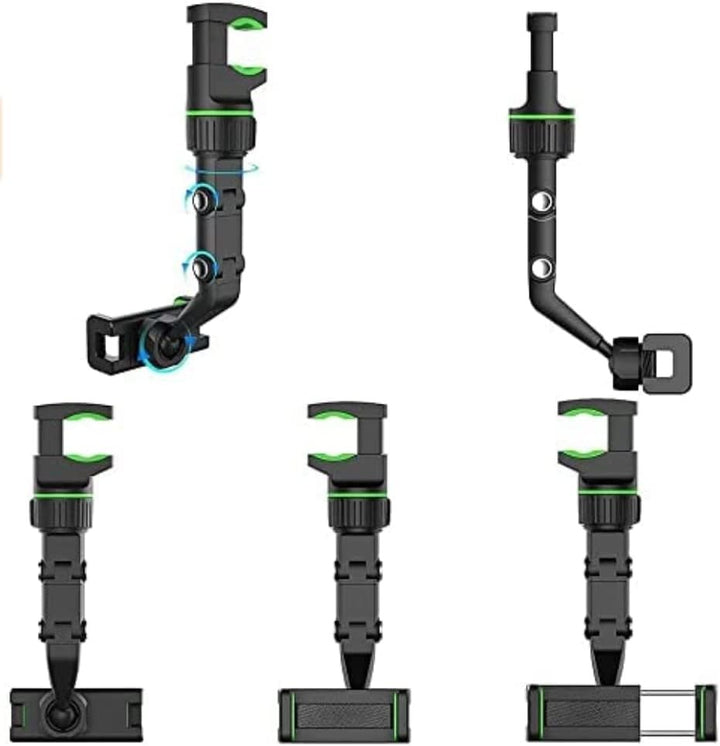 - **حامل موبايل متعدد الوظائف لمرآة الرؤية الخلفية:** يمكن استخدامه لمرايا الرؤية الخلفية في السيارة أو كحامل جوال على الطاولة.