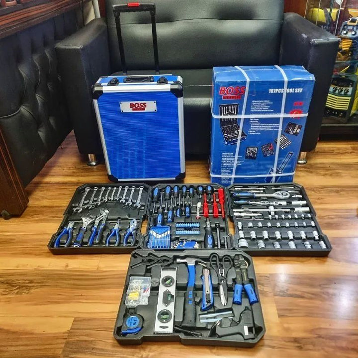 ### 🌟 اجعل أعمال الصيانة والإصلاح أسهل وأكثر فعالية مع حقيبة أدوات BOSS المكونة من 187 قطعة! 🌟