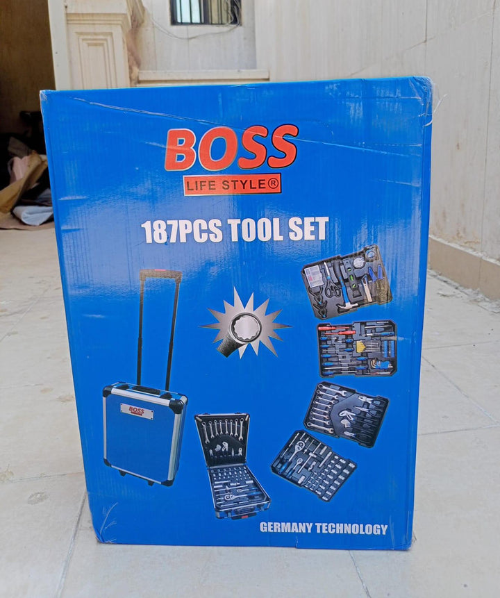 ### حقيبة أدوات 187 قطعة (BOSS) #### **المميزات الرئيسية:** - **🔧 مجموعة أدوات شاملة:** تحتوي على 187 قطعة لتلبية جميع احتياجات الصيانة والإصلاح. - **🛠️ أدوات متنوعة:** تتضمن مفكات، مفتاح عزم،...
