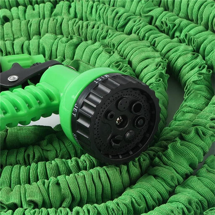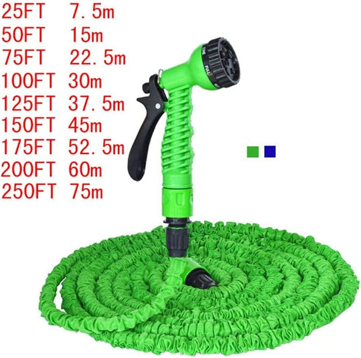 الخرطوم يتمدد بفعل ضغط مضخة الماء الى ثلاثة اضعاف طوله الطبيعي ومن ثم يتقلص بمجرد تفريغه من الماء قوي ومتين و يتحمل حرارة الشمس خفيف الوزن ولا ينثني او يلتوي مزود برشاش ماء بثمانية اوضاع للرش