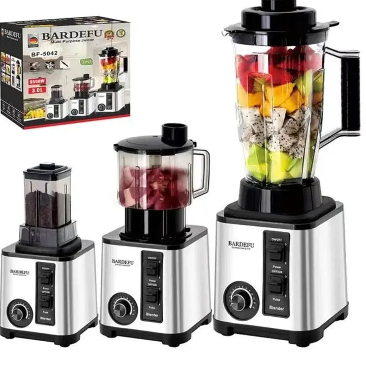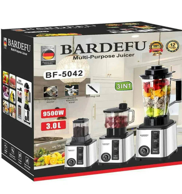 **💪 Bardefu Heavy Duty German Powerful Blender 3in1 💪** **🔧 المواصفات:** - **القدرة:** 9500 واط - **الموتور:** قوي جدًا - **السعة:** إبريق كبير غير قابل للكسر 3 لتر - **ملحقات:** مفرمة...