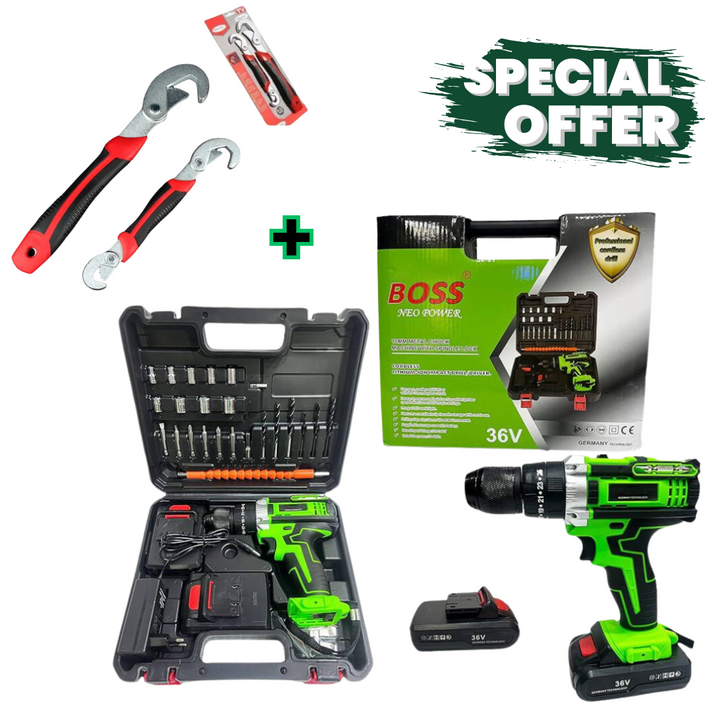 دريل اخضر ببطاريه 36 فولت (BOSS) + مفتاحين هديه