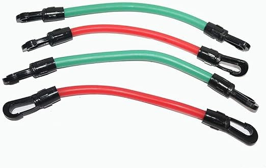 مجموعات قوة مختلفة: تتضمن مجموعتنا أحزمة مقاومة بقوة متنوعة، حيث تأتي الأحزمة الحمراء بقوة 20 رطل لكل قطعتين، والأخضر بقوة 25 رطل لكل قطعتين. يمكن استخدام جميع الأحزمة بشكل فردي أو مزيج منها بحد أقصى يعادل 90 رطل.