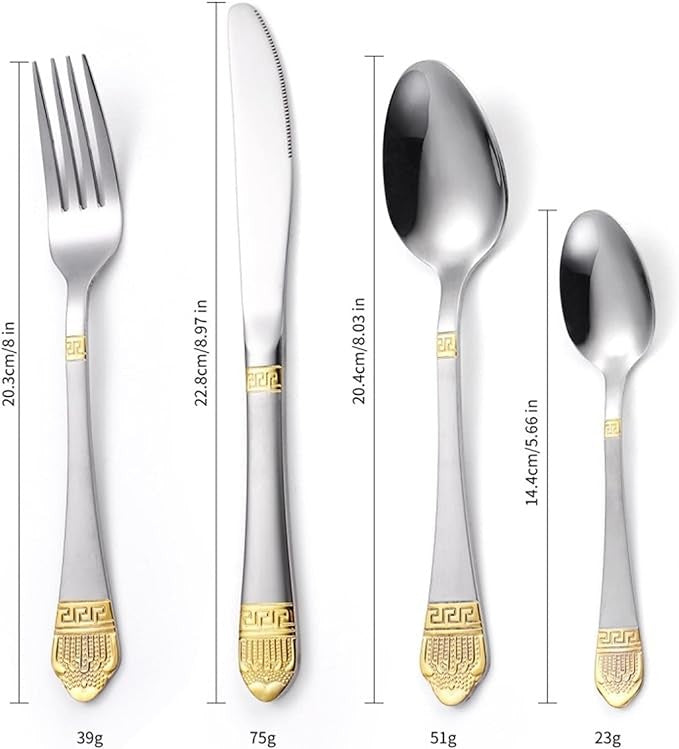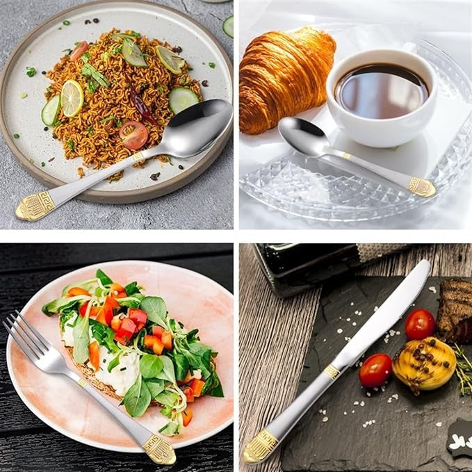 متعدد الاستخدامات: يحتوي هذا الطقم على مجموعة متنوعة من الأدوات بما في ذلك الشوك والملاعق والسكاكين وأدوات الخدمة، مما يجعله مناسبًا لاستخدامات متعددة من تناول الطعام اليومي إلى العشاء الرسمي.