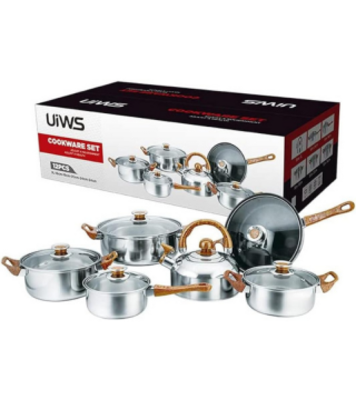 ١. أدوات طهي محسنة: يتميز كل قطعة في هذا الطقم بقلب من الألمنيوم الثقيل، مما يوفر توزيعاً متساوياً للحرارة وأداء طهي فائق.
