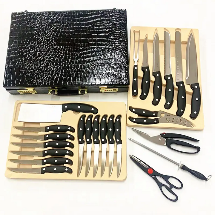 طقم سكاكين ستانلس ستيل مع شنطة - 25 قطعة