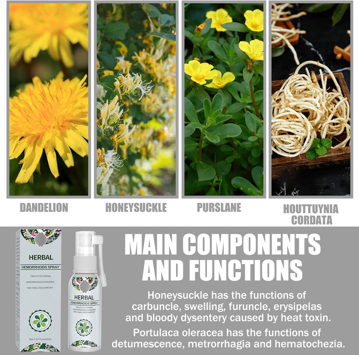 **المكونات الطبيعية:** تم إعداد رذاذ البواسير الخاص بنا من مكونات طبيعية لطيفة وآمنة وموثوق بها. برائحة ممتعة وامتصاص سهل، يوفر الراحة السريعة.
