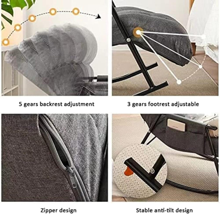 ✨ كرسي زاكفي الهزاز ومقعد الاسترخاء ✨ 🛋️ وصف المنتج: كرسي هزاز للغرف والمعيشة ومناسب لغرف النوم والشقق بتصميم عصري ومريح قماش تقني مقاوم للماء وسهل التنظيف مزود بفتحة يدوية في...