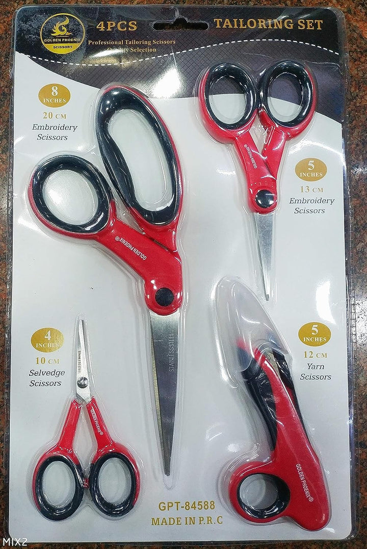تتضمن العبوة: مقص تطريز (20 سم) ، مقص تطريز (13 سم) ، مقص سيلفيدج (10 سم) ، مقص غزل (12 سم)