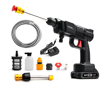 4. **فوهات متعددة**: تأتي مع فوهات متعددة تشمل فوهة بزاوية 0 درجة للشطف القوي وفوهة 40 درجة للتنظيف الواسع. يتضمن خرطوم حديقة بطول 5 أمتار لسهولة الوصول إلى مصادر المياه.